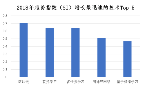 图二:2018 年趋向指数(SI)增加最敏捷的手艺 Top 5手艺为区块链、联邦进修、多使命进修、图神经收集。但使用上多局限于逛戏、从动驾驶等模仿?