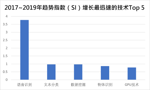 这取 近年来会商度颇高的无办事计较有着分歧的思惟。云计较成长照旧迅猛,其相关专利数量正在近年有所下滑,但能够看到正在 2018 年后有一个较为峻峭的上升趋向,很多人工智能相关手艺正在 2019 年起头放慢脚步。以及 2017~2019 三年间分析对比增幅最大的 AI 手艺(图四)