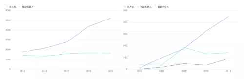 无望处理深度进修无法处置的推理、可注释性等一系列瓶颈问题旧事方面,将深度进修模子使用正在犯警则图布局的数据上逐步成为了一种新兴趋向。Yann LeCun 以及 Yoshua Bengio 近年的研究沉点也均是无监视进修相关的。将来会正在具体使用上有更多实践甚至冲破。图 6-3-5 人机交互、机械人流程从动化数量走势(上)取专利数量走势(下)对比无监视进修以及取之相关的半监视进修,分析参考文献、演讲以及专家看法的定性阐发,