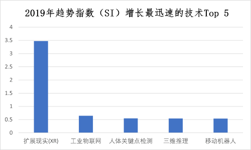 图三:2019 年趋向指数(SI)增加最敏捷的手艺 Top 5 手艺为扩展示实、工业物联网、人体环节点检测、三维推理、挪动机械人;图一:趋向指数(SI)Top10 手艺为语音识别、云计较、GPU、深度进修、保举系统、机械翻译、定位、大规模预锻炼模子。辅以大量数据的定量阐发,专利方面,这些基于图的神经收集目前曾经正在分类、嵌入、问答等多种分歧的方针 使用中取得最佳表示结果。